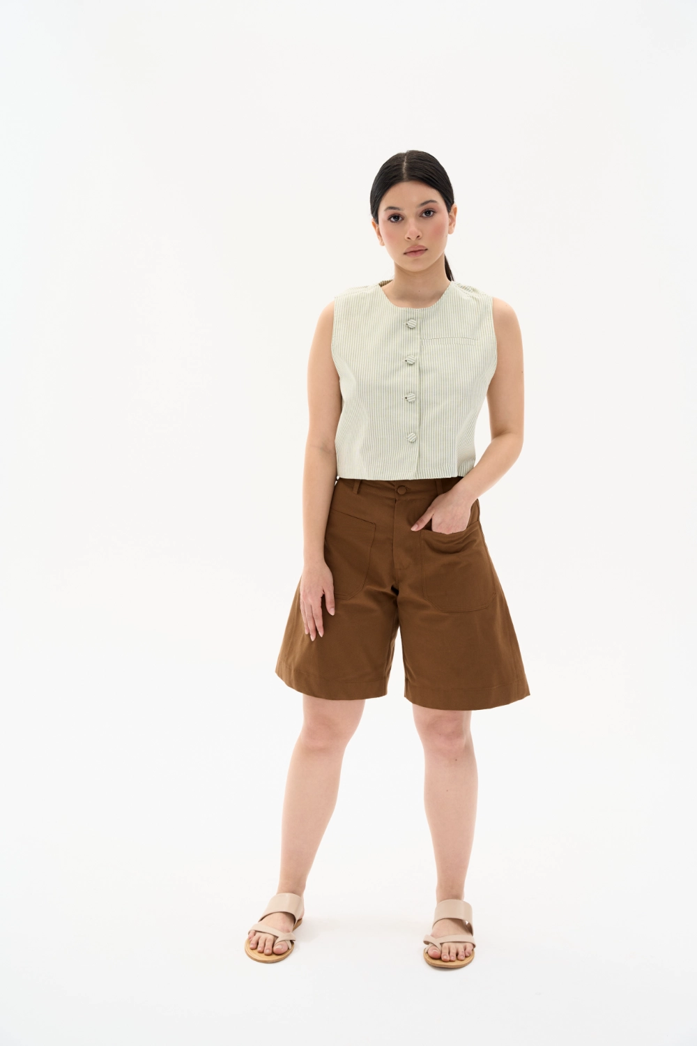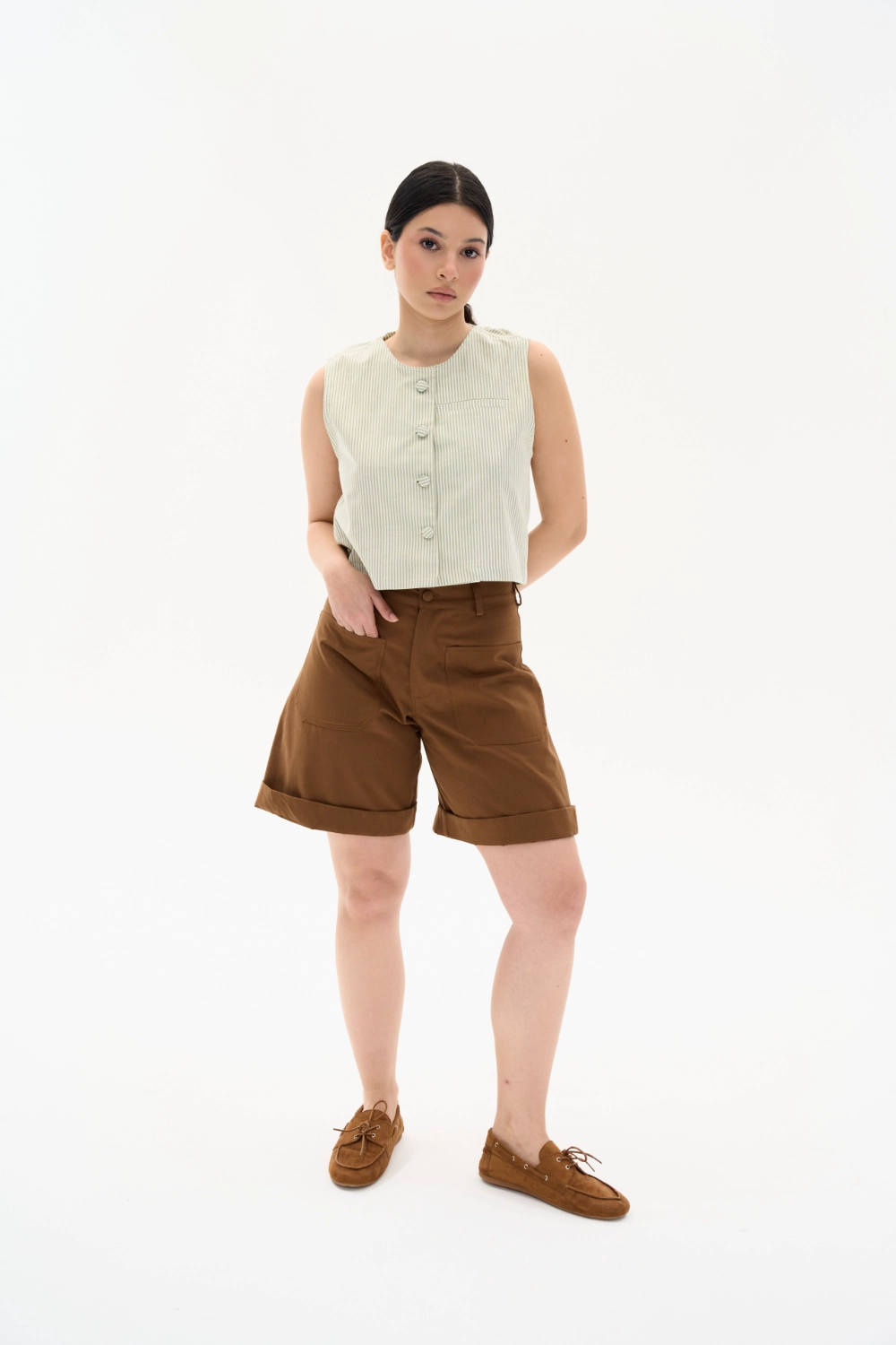Yaz aylarının vazgeçilmezi olacak bu kahverengi pamuklu şort, hem rahatlığı hem de şıklığı bir arada sunuyor. %100 pamuklu kumaşı sayesinde cildinize nefes aldırırken, yumuşak dokusuyla gün boyu konfor sağlıyor. Klasik kahverengi rengiyle her türlü kombinle uyum sağlayan şort, modern kesimiyle de tarzınızı yansıtıyor.