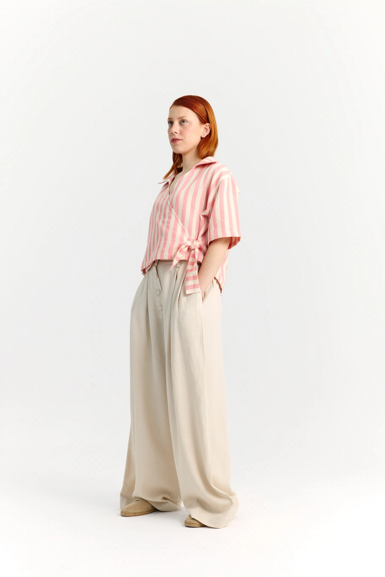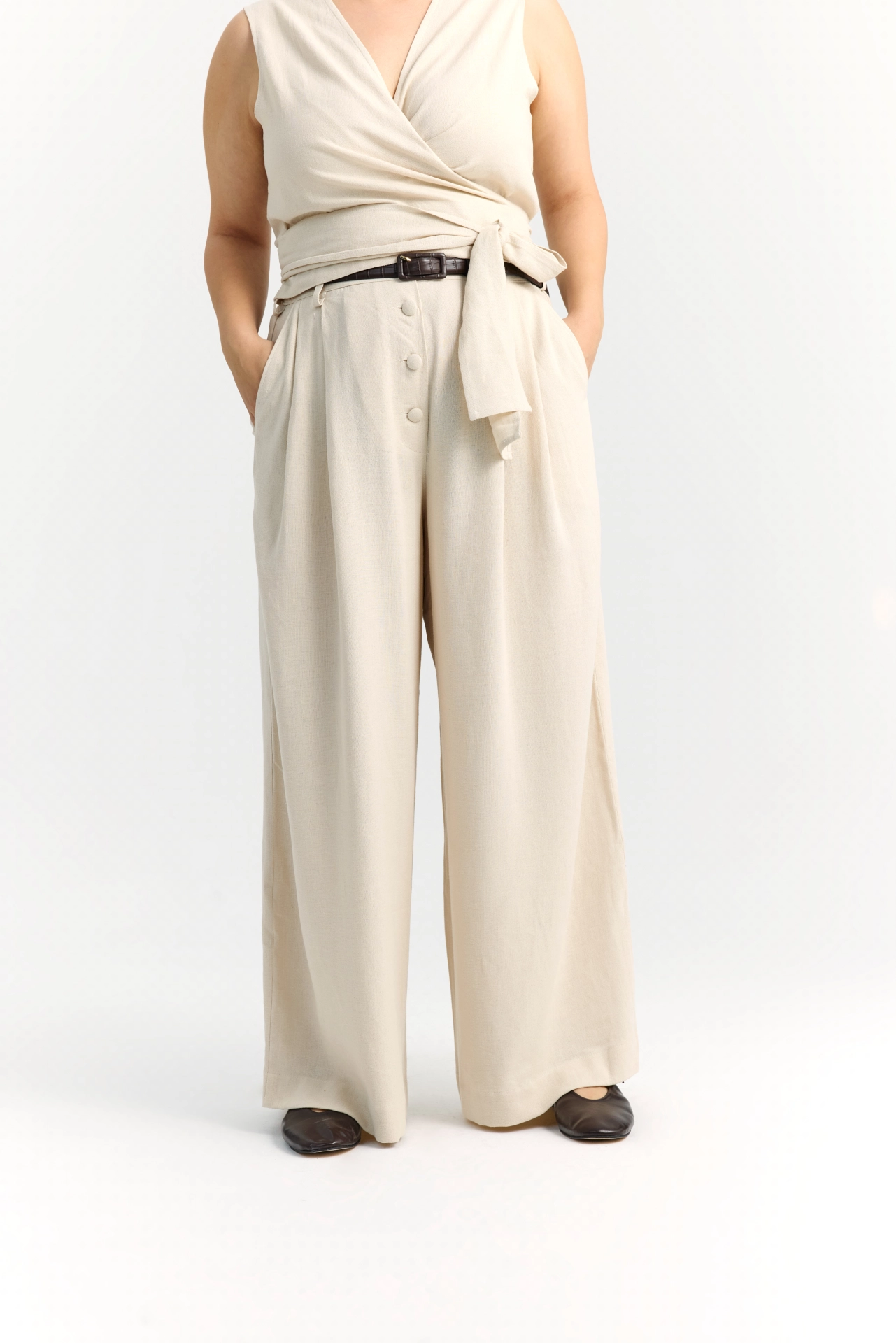 Donna Pantolon, rahatlık, çok yönlülük ve zahmetsiz şıklığın mükemmel dengesini sunuyor. Viskon & keten karışımlı kumaşı sayesinde hafif, nefes alabilen ve yumuşak dokulu bir yapıya sahip. Yarı elastik bel bandı, hareket özgürlüğü sağlar, ön kısımdaki pile detayları sofistike bir hava katarken ekstra konfor sunuyor.