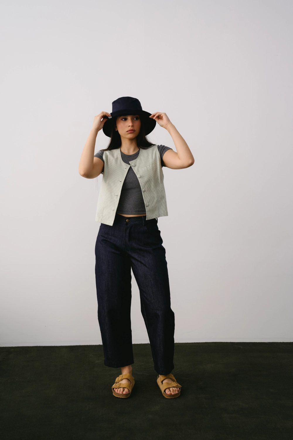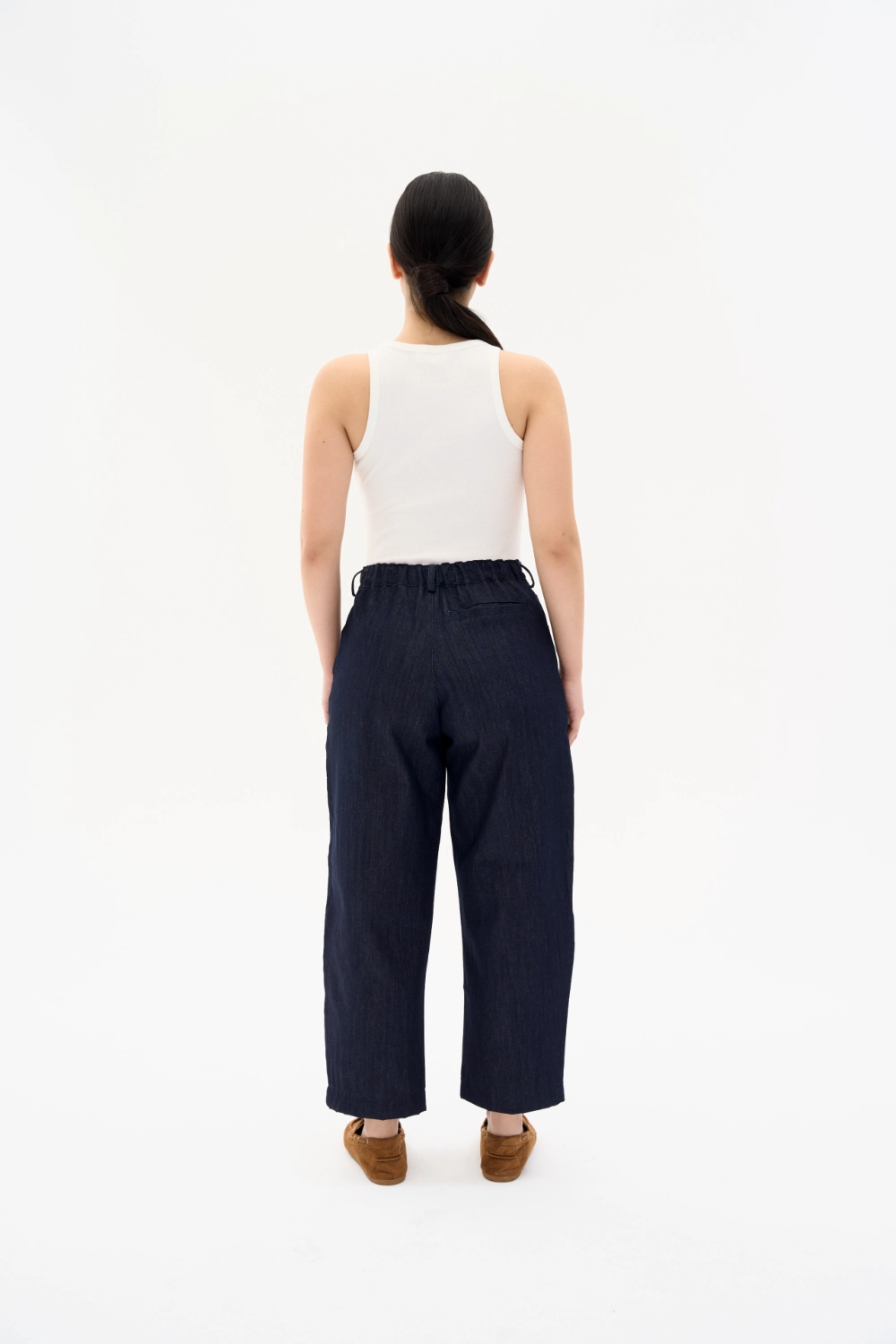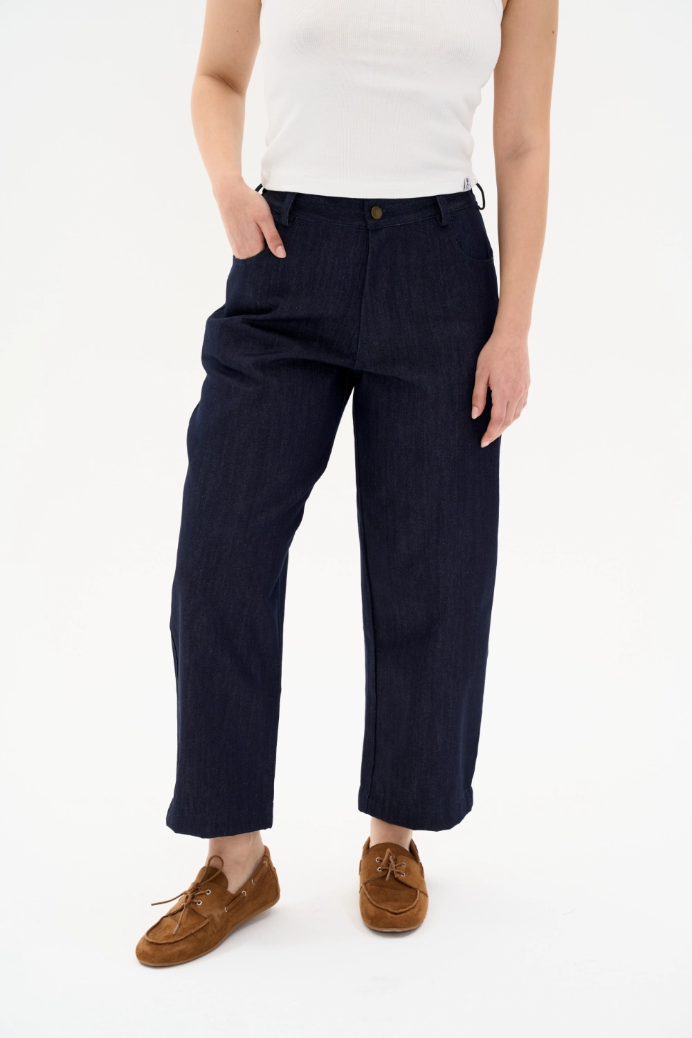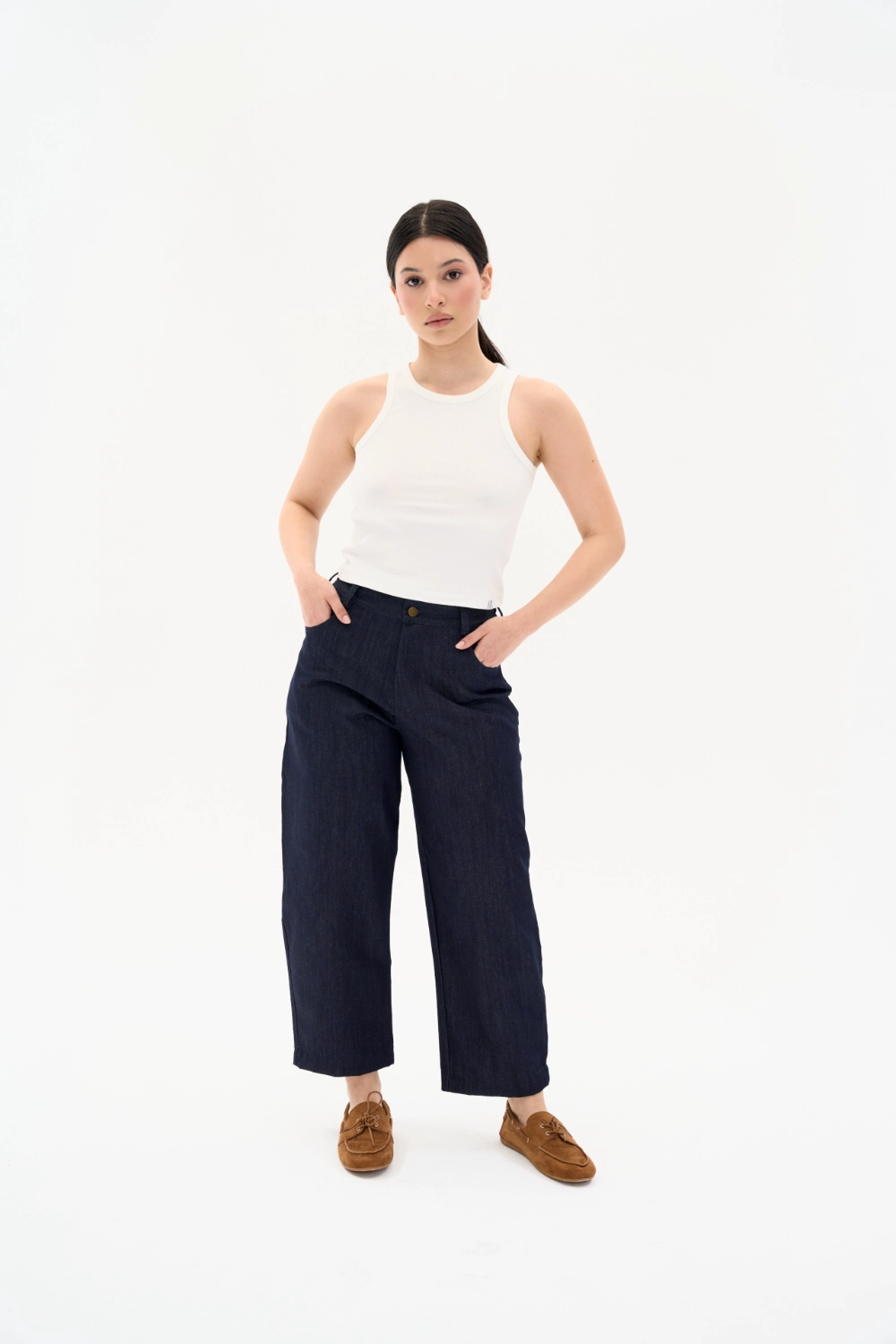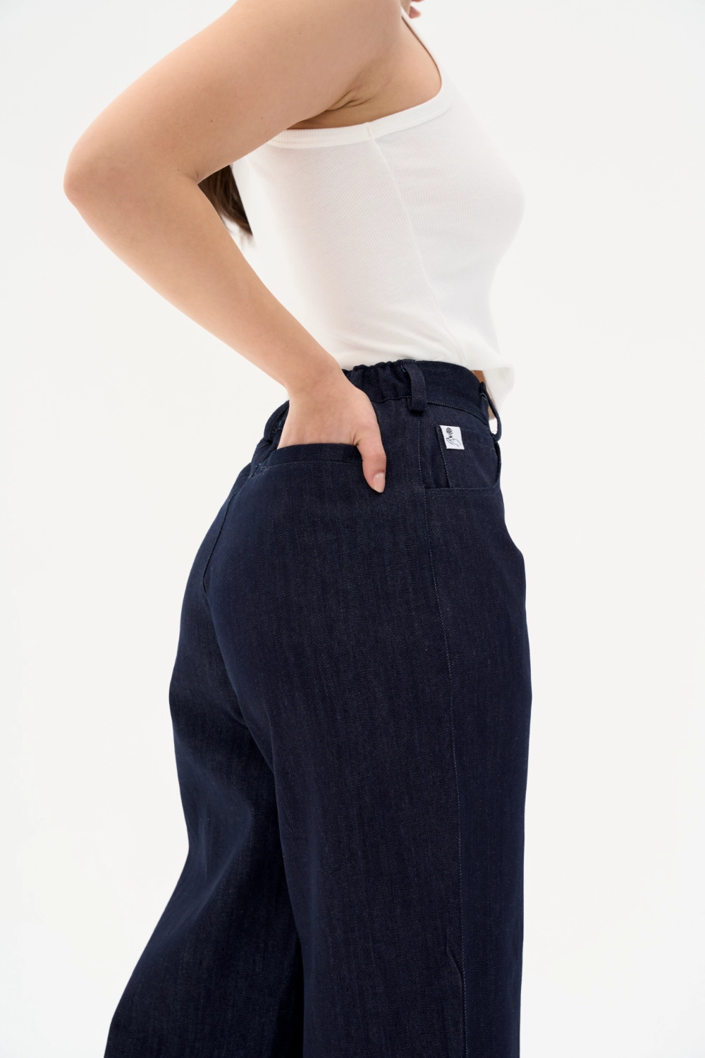 %100 pamuk, denim dokuma kumaştan üretilen bu pantolon, her adımda yumuşaklık ve zarafeti bir araya getirir. Esnek arka bel formu ve dökümlü siluetiyle hem şehirde hem seyahatte rahat, doğal ve güçlü bir stil sunar.