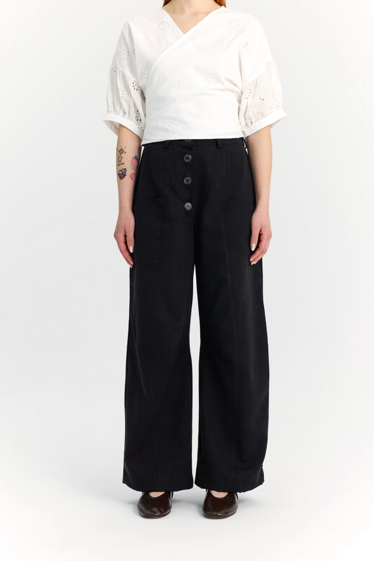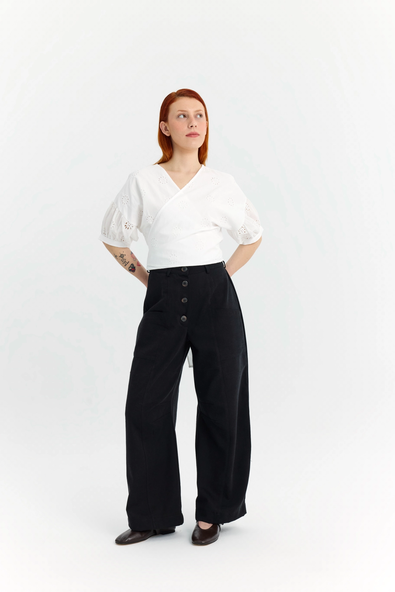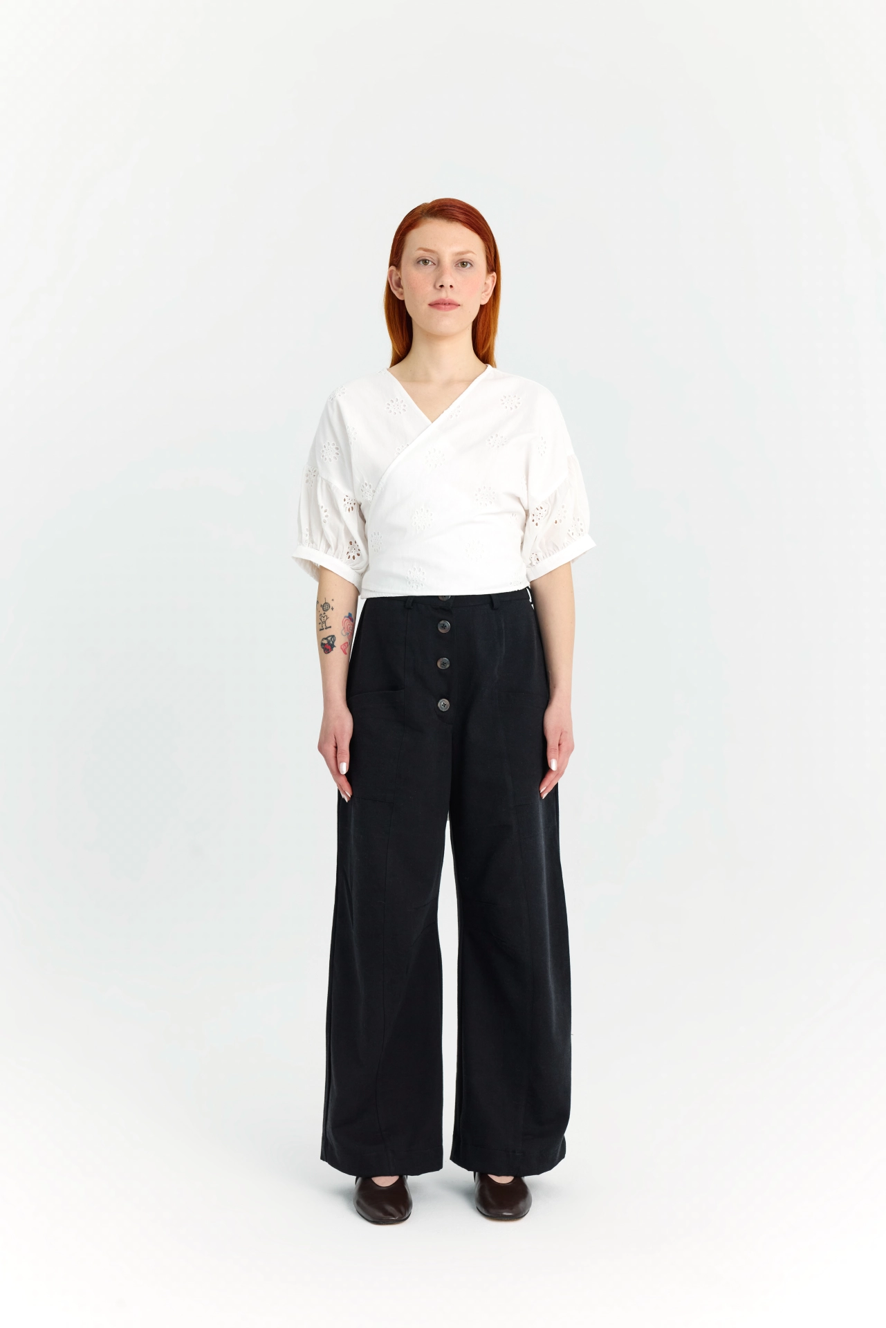 %100 pamuk kumaşı sayesinde cildinizle dost, nefes alabilen bir deneyim sunarken, orta kalınlıkta dokusu, dört mevsim kullanım için idealdir. Diz kısmındaki pens detayı ise pantolona zarif bir form kazandırarak sade görünümüne modern bir dokunuş katar. Arka bel kısmında yer alan lastik sayesinde farklı bedenlere uyum sağlar ve gün boyu konfor sunar.